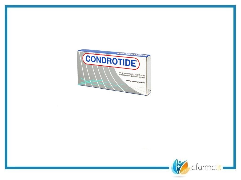 Condrotide Siringa Intrarticolare è una Soluzione viscoelastica, trasparente, incolore a base di polinucleotidi; si presenta sotto forma di siringa di vetro, pre-riempita, sterile, apirogena, monouso, contenente 2 ml di soluzione. I polinucleotidi sono altamente purificati, di origine ittica ed hanno una concentrazione di 20 mg/ml. Condrotide è caratterizzato dalla viscoelasticità e da un elevato potere di legare numerose molecole d'acqua, pertanto consente di lubrificare e favorire la normalizzazione della viscosità del liquido sinoviale.