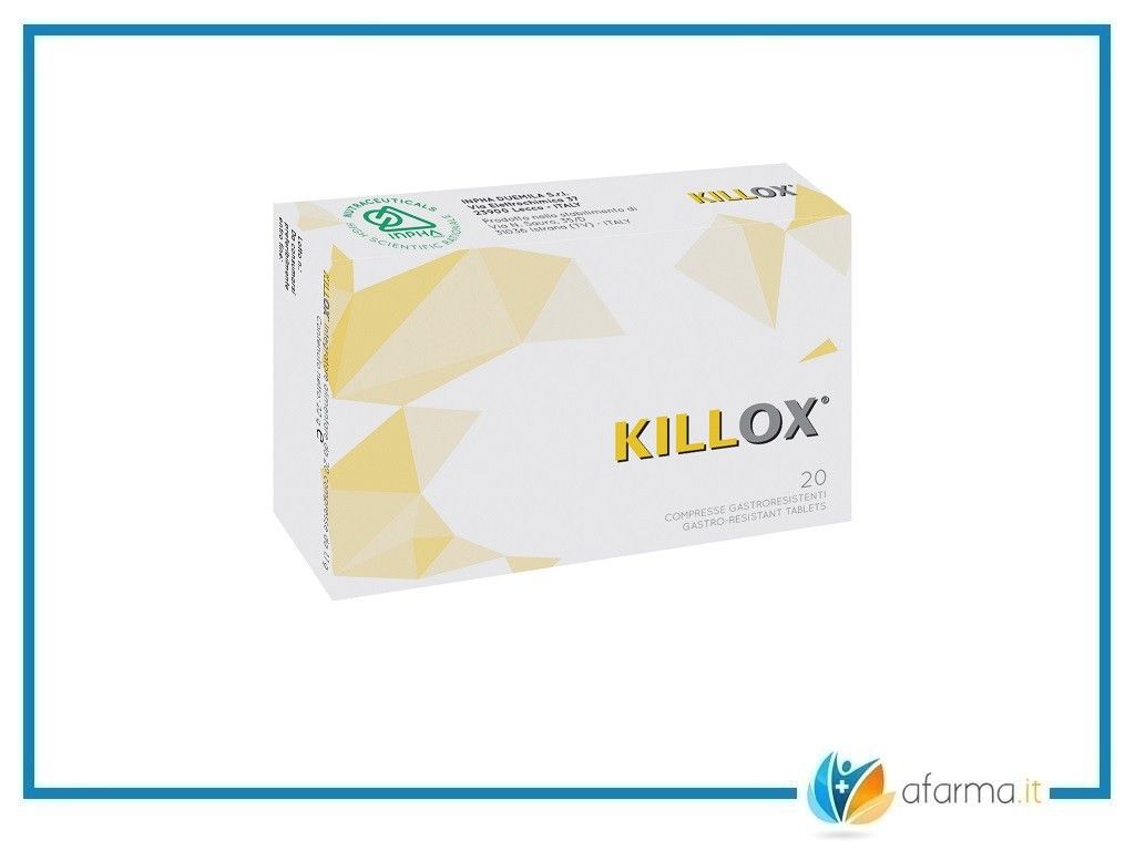 Killox è un Integratore dall'effetto antinfiammatorio naturale, come tale non provoca effetti collaterali o non ha controindicazioni di rilievo. Al suo interno sono contenuti Curcuminoidi, Resveratrolo e Zinco.