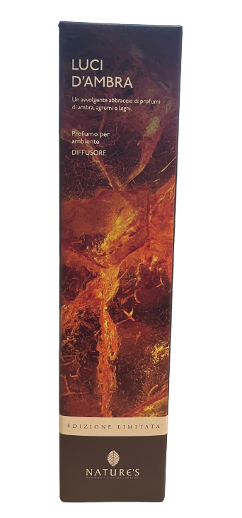 Profumo per ambiente con una profumazione dolce e morbida, leggermente speziata. Ambra, Mandarino Candito e Sandalo.