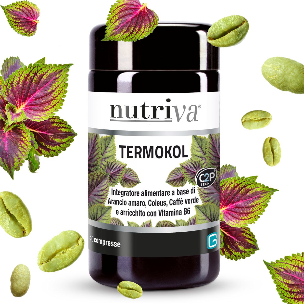 Nutriva Termokol è un Integratore alimentare a base di estratti vegetali con vitamina B6 che favorisce il dimagrimento, dona energia ed è un valido alleato per il controllo del peso corporeo.