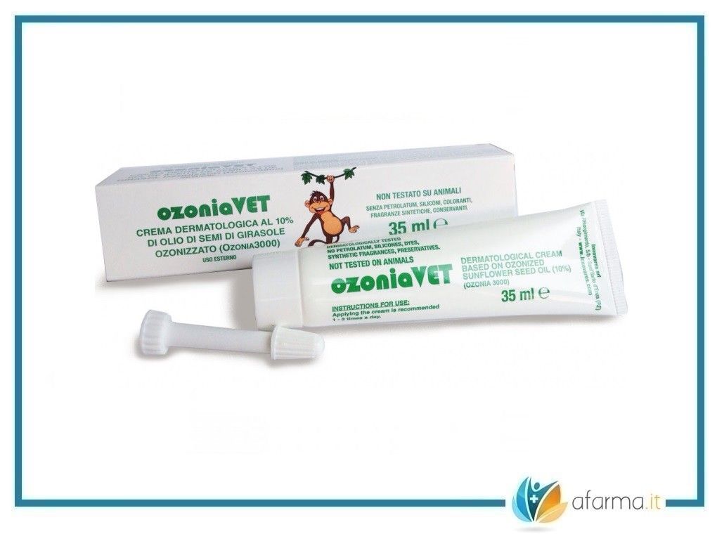 OzoniaVet è una preparazione dermatologica specifica per l'animale contenente al 10% di olio di semi di girasole ozonizzato, utile per favorire i processi di cicatrizzazione e riparazione cutanea.